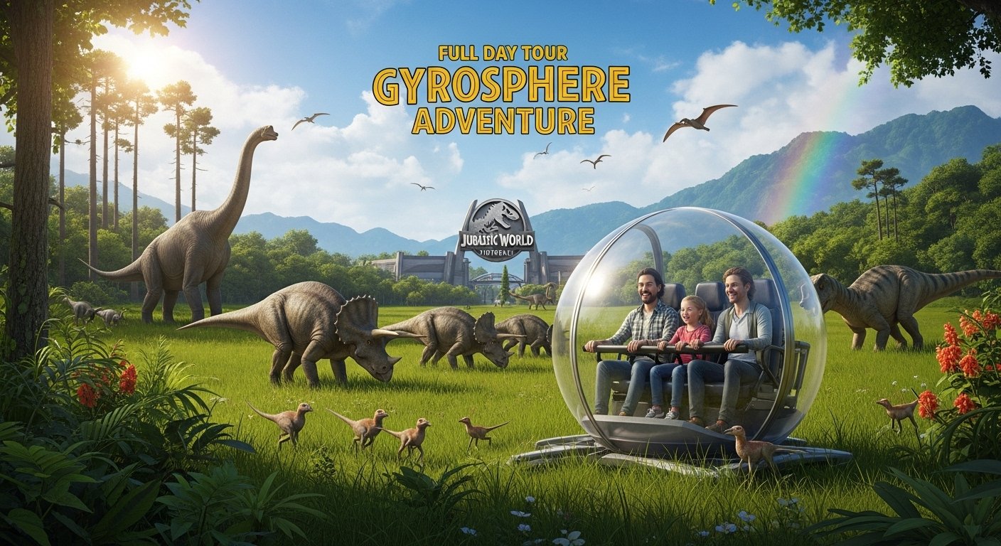 La aventura definitiva con un full day en Isla Nublar, y acércate a los dinosaurios como nunca antes. Sube a Gyrosphere Adventure, la atracción estrella, donde recorrerás praderas prehistóricas dentro de una cápsula transparente de 360°.